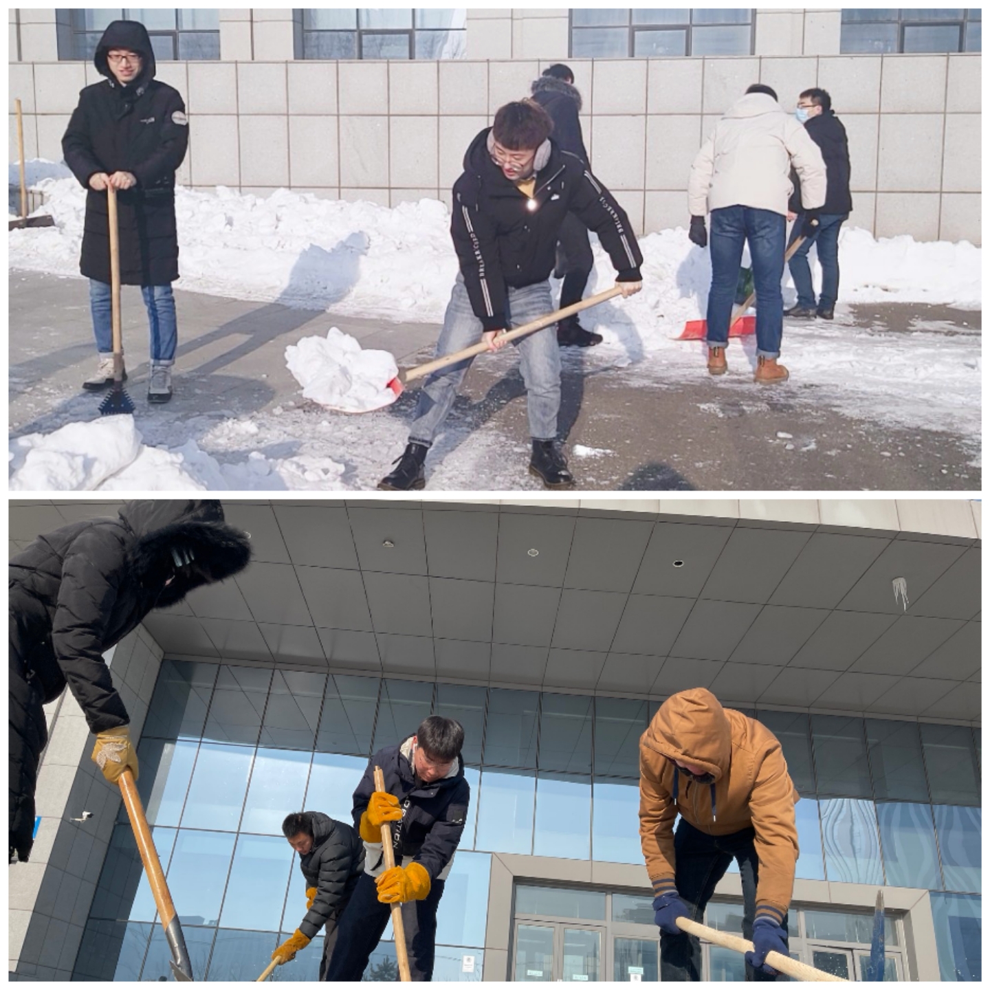 清除主樓門前和樓梯兩側(cè)的積雪是這次志愿活動的主要任務(wù),部分路面的積雪被碾壓成冰,給清雪任務(wù)造成很大的困難。青年志愿者們不畏嚴(yán)寒、團(tuán)結(jié)協(xié)作,有序清理堆積的冰雪,他們有的揮舞鐵鍬,鏟冰除雪,有的手拿掃帚,清掃路面,熱火朝天的掃雪場面為寒冷的冬日增添了別樣的美麗。經(jīng)過了長達(dá)兩個多小時的共同努力,主樓門前的薄冰和積雪被清理干凈,恢復(fù)了往日的干凈整潔,保障了廣大職工的出行安全。