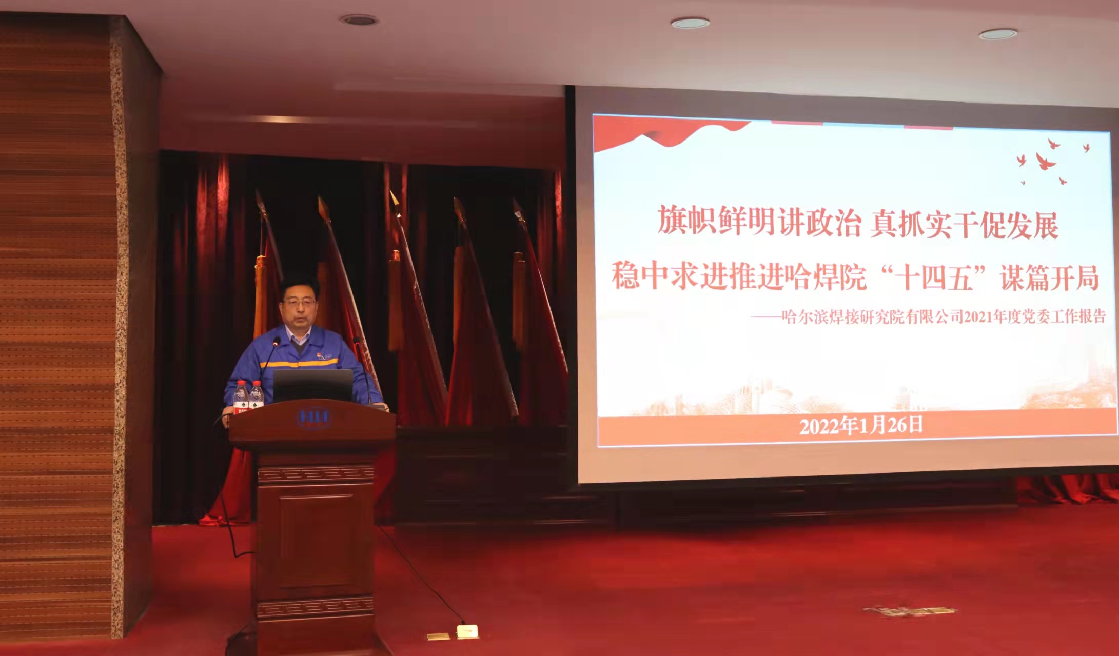 楊玉亭同志代表黨委作題為《旗幟鮮明講政治 真抓實干促發展 穩中求進推進哈焊院“十四五”謀篇開局》的黨委工作報告,報告全面總結了哈焊院2021年黨建工作成果,分析了黨建工作存在的不足,明確了2022年黨建總體思路,部署了2022年的重點工作。