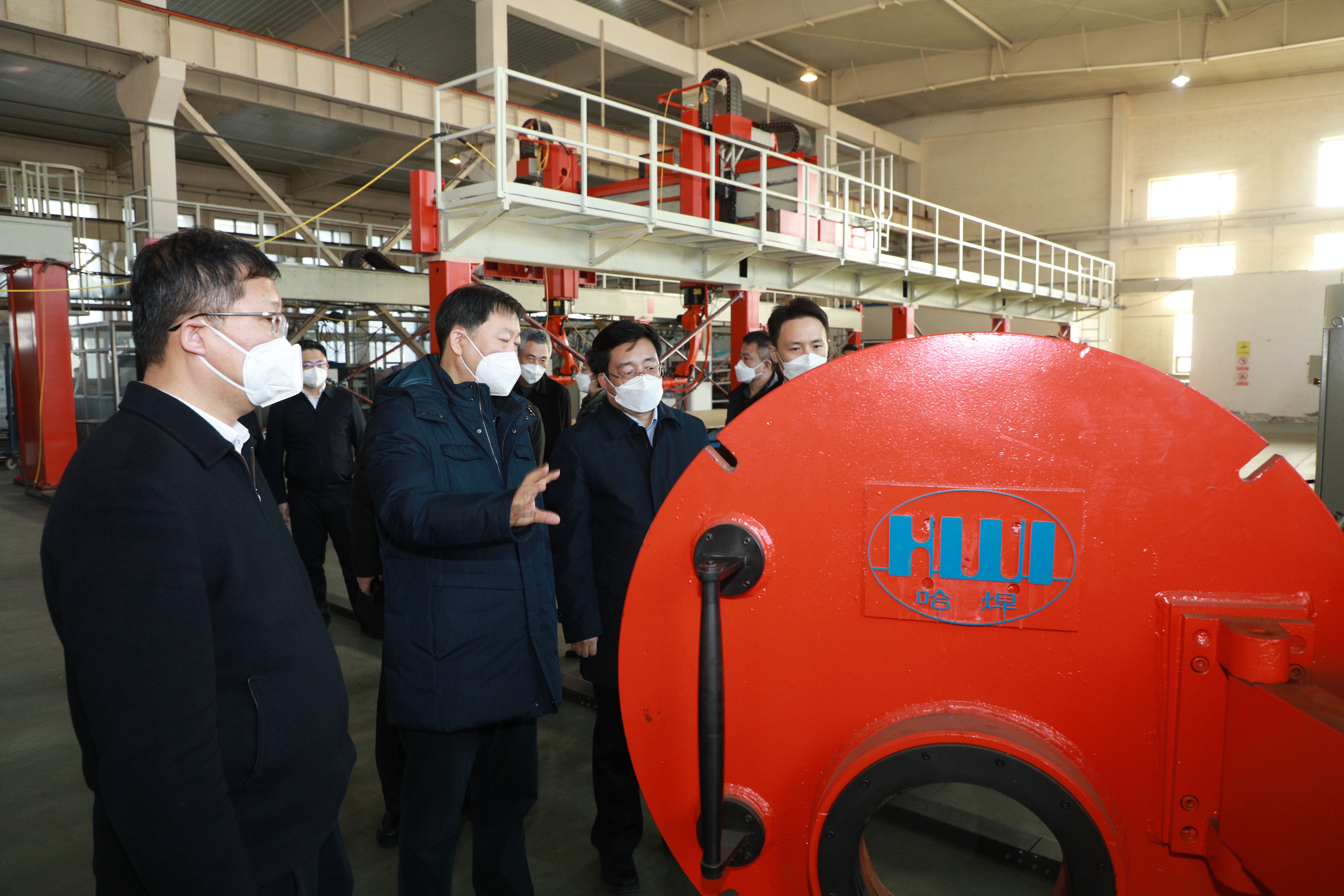 張安順走進(jìn)焊接工藝裝備生產(chǎn)車間,察看產(chǎn)品類型、技術(shù)工藝,了解成套設(shè)備組裝、市場銷售情況,哈焊院黨委書記、董事長楊玉亭,總經(jīng)理、黨委副書記雷振就具體情況予以詳細(xì)介紹。張安順對(duì)哈焊院勇于突破關(guān)鍵核心技術(shù),攻克多個(gè)國家級(jí)科研項(xiàng)目“卡脖子”技術(shù)難關(guān),擺脫關(guān)鍵設(shè)備依賴進(jìn)口的做法給予肯定,勉勵(lì)哈焊院繼續(xù)發(fā)揚(yáng)攻堅(jiān)克難的拼搏勁頭,堅(jiān)持創(chuàng)新、勇于創(chuàng)新,突破更多前沿技術(shù),在市場競爭中贏得更大優(yōu)勢和發(fā)展空間。