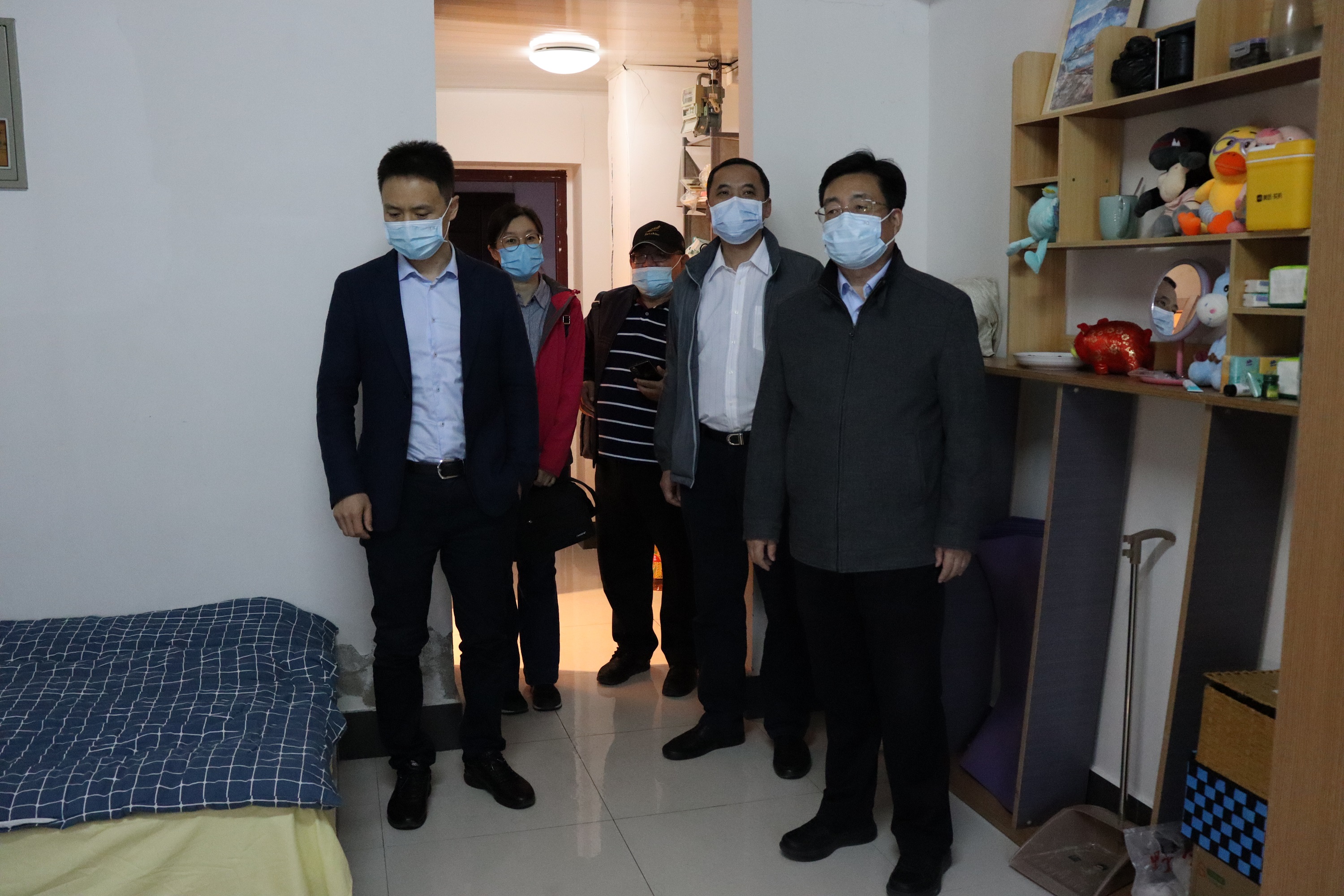 5月17日,物業中心安排專門人員及車輛,組織完成了研究生搬家。當晚,哈焊院黨委書記、董事長楊玉亭,總經理、黨委副書記雷振,黨委副書記、紀委書記儲繼君一行到新公寓走訪慰問剛剛搬遷完畢的研究生,實地查看了宿舍的生活環境及管理情況,與青年職工進行親切交談并詳細了解青年職工的生活情況和日常需求,耐心解答青年職工生活、工作方面的具體問題,并要求相關部門及時協調解決。