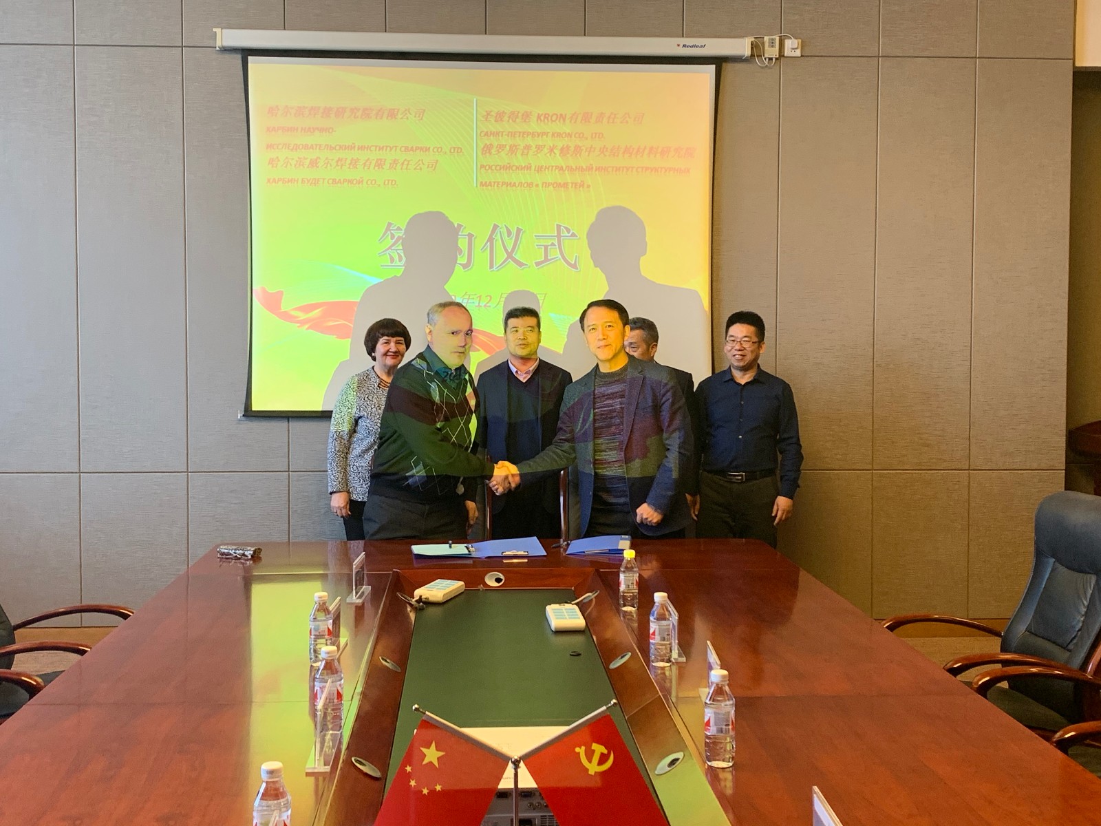 2019年12月19日,哈焊院與俄羅斯圣彼得堡KPON公司的合作簽約儀式在哈焊院舉行。哈焊院總經理李連勝、副總經理徐鍇、威爾公司總經理陳波以及KPON公司總經理Bayguzin Evgeniy、俄羅斯普羅米修斯中央結構材料研究院焊接專家Morozovskaya Irina共同出席了簽約儀式。