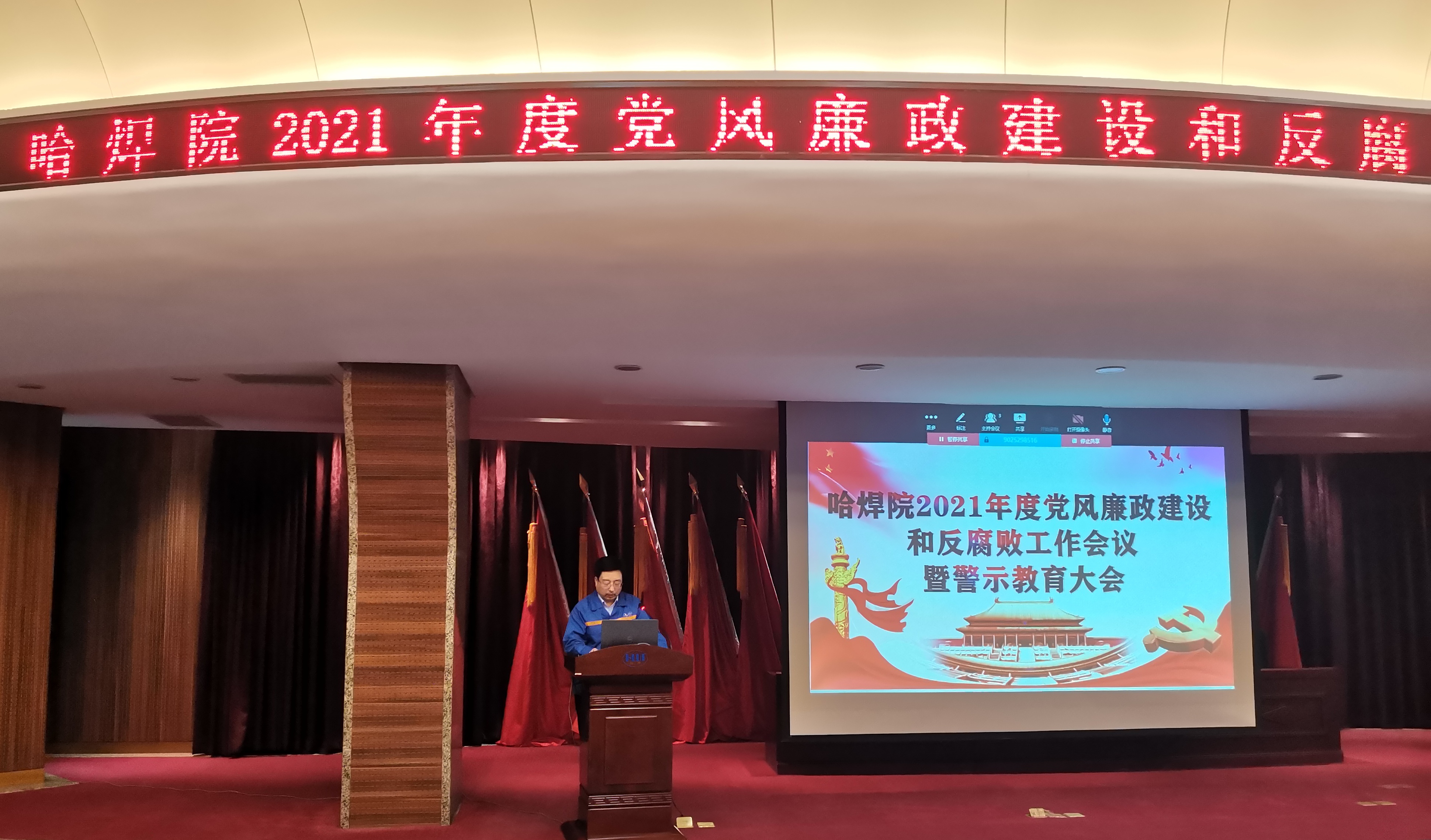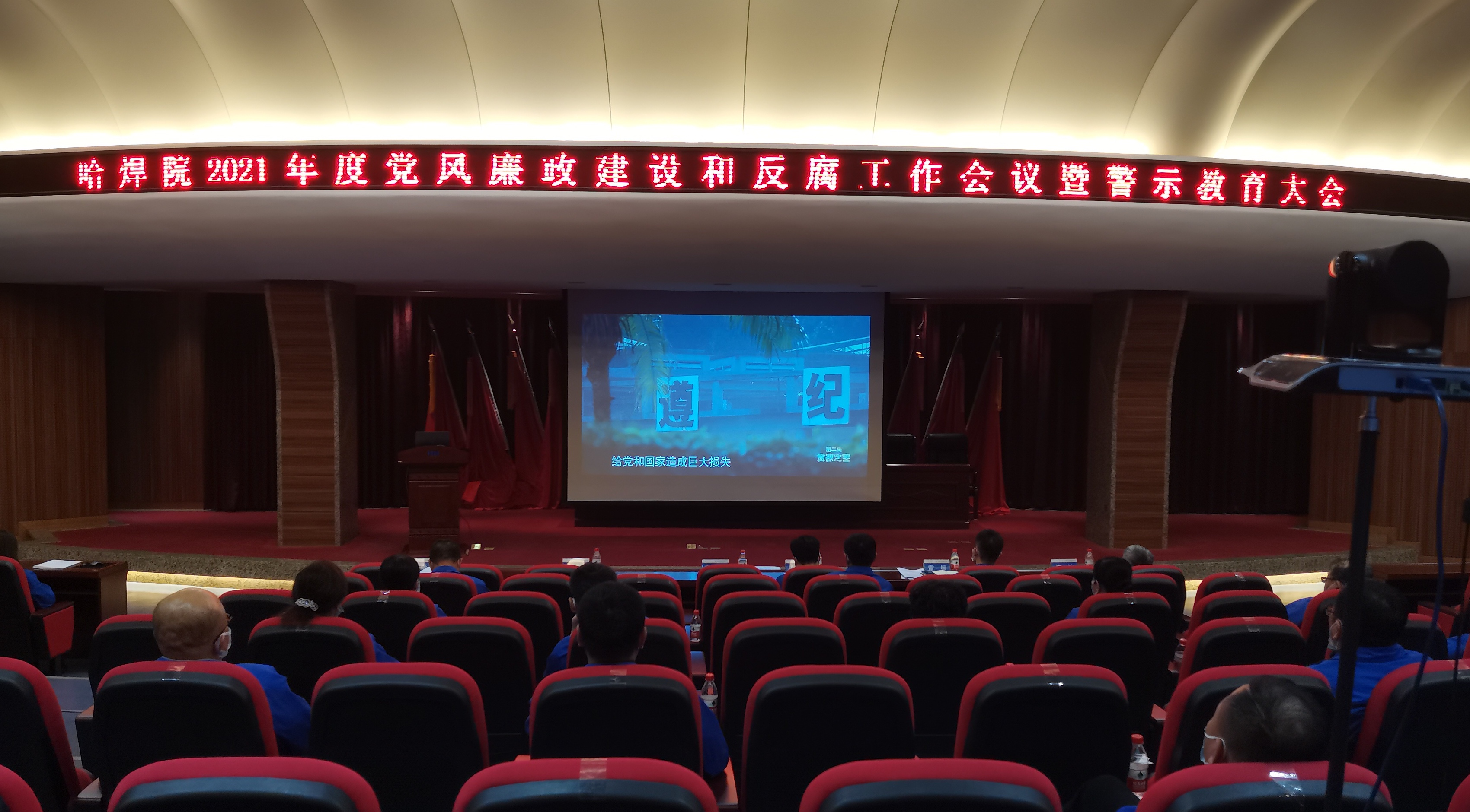 為貫徹落實國資委巡視反饋意見整改及2021年總院集團黨風廉政建設和反腐敗工作會議暨警示教育大會工作部署,全面總結2020年哈焊院黨風廉政建設和反腐敗工作,部署2021年重點工作任務,開展警示教育。哈焊院于3月31日在學術報告廳召開黨風廉政建設和反腐敗工作會議暨警示教育大會,會議設主會場和華通分會場,哈焊院領導班子成員、中層干部、各黨支部書記及委員、關鍵崗位人員以及華通公司經理層等相關人員參加會議。會議由哈焊院黨委副書記、紀委書記儲繼君同志主持。
