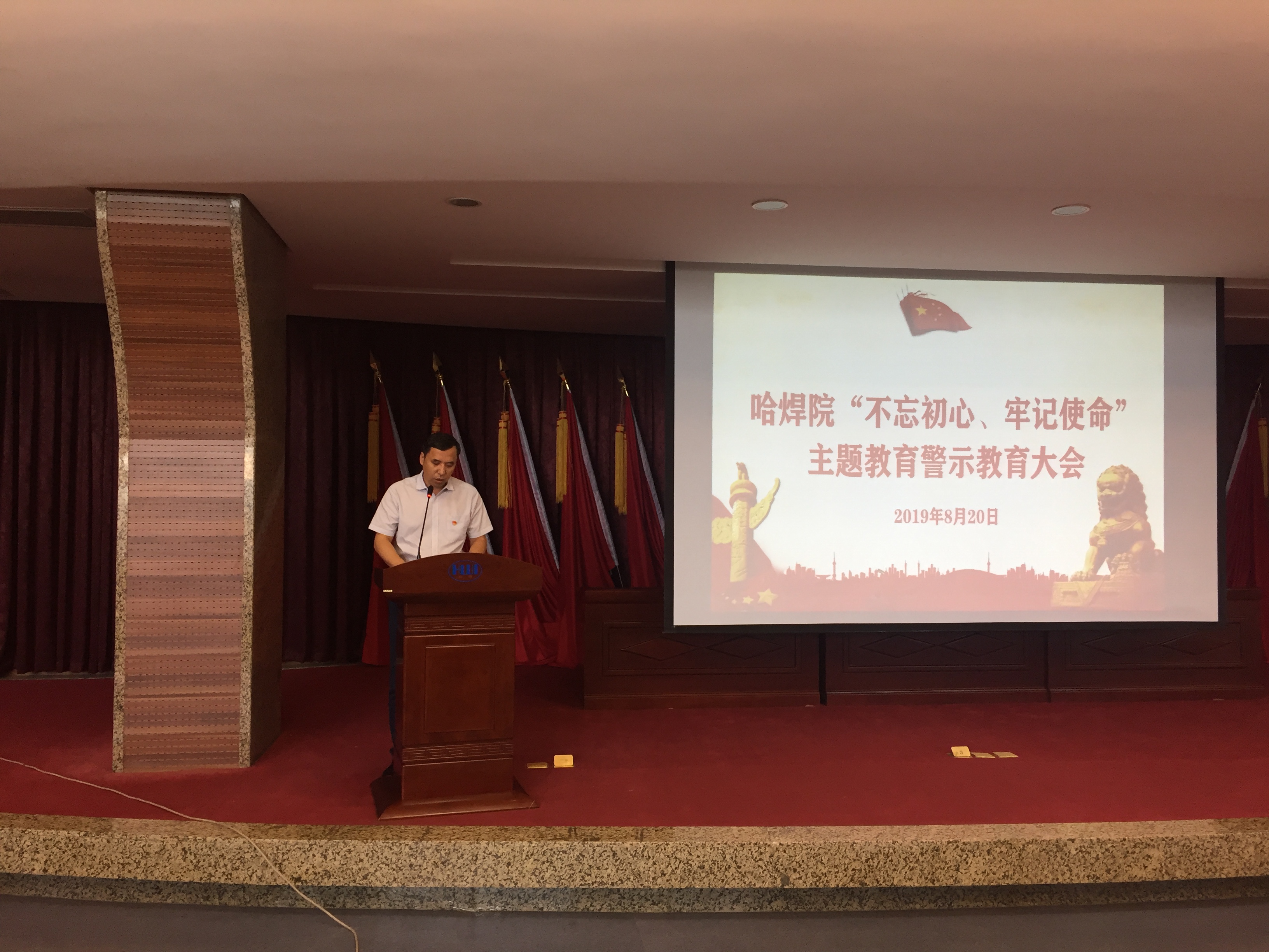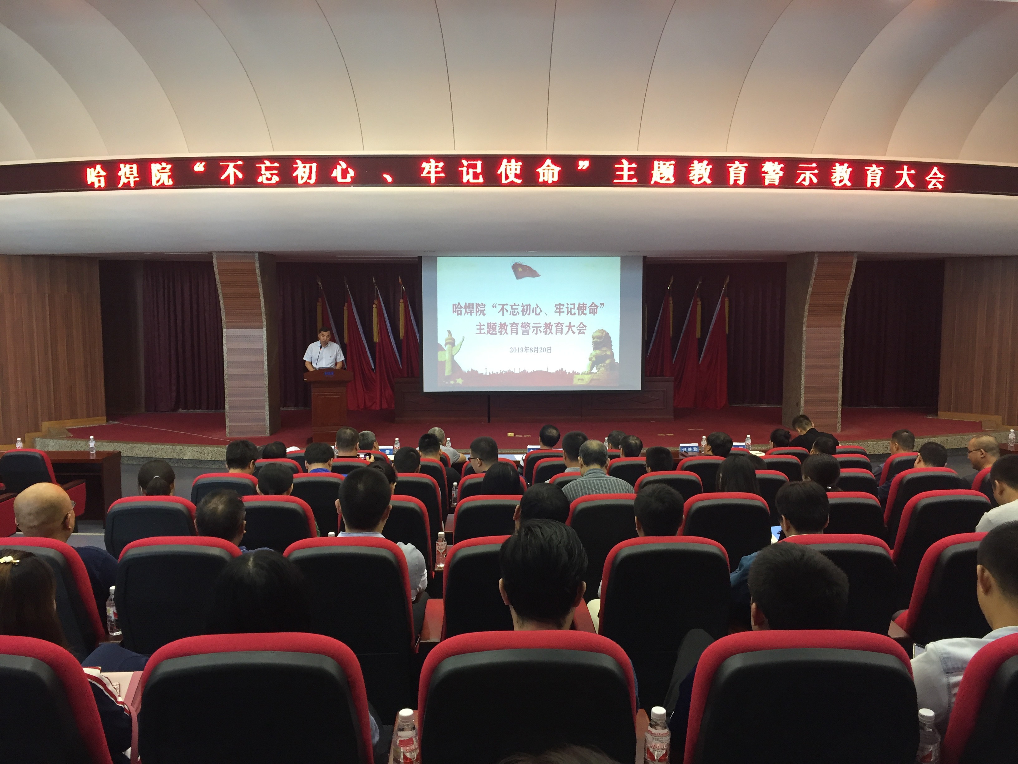 按照哈焊院“不忘初心、牢記使命”主題教育工作推進計劃安排,為保持廣大黨員干部為民務實清廉的政治本色,警鐘長鳴,知敬畏、存戒懼、守底線,公私分明,營造哈焊院風清氣正的政治生態,哈焊院黨委于8月20日在學術報告廳召開警示教育大會,會議由哈焊院黨委副書記、紀委書記儲繼君主持,哈焊院領導班子成員、中層干部、全體黨員參加會議。