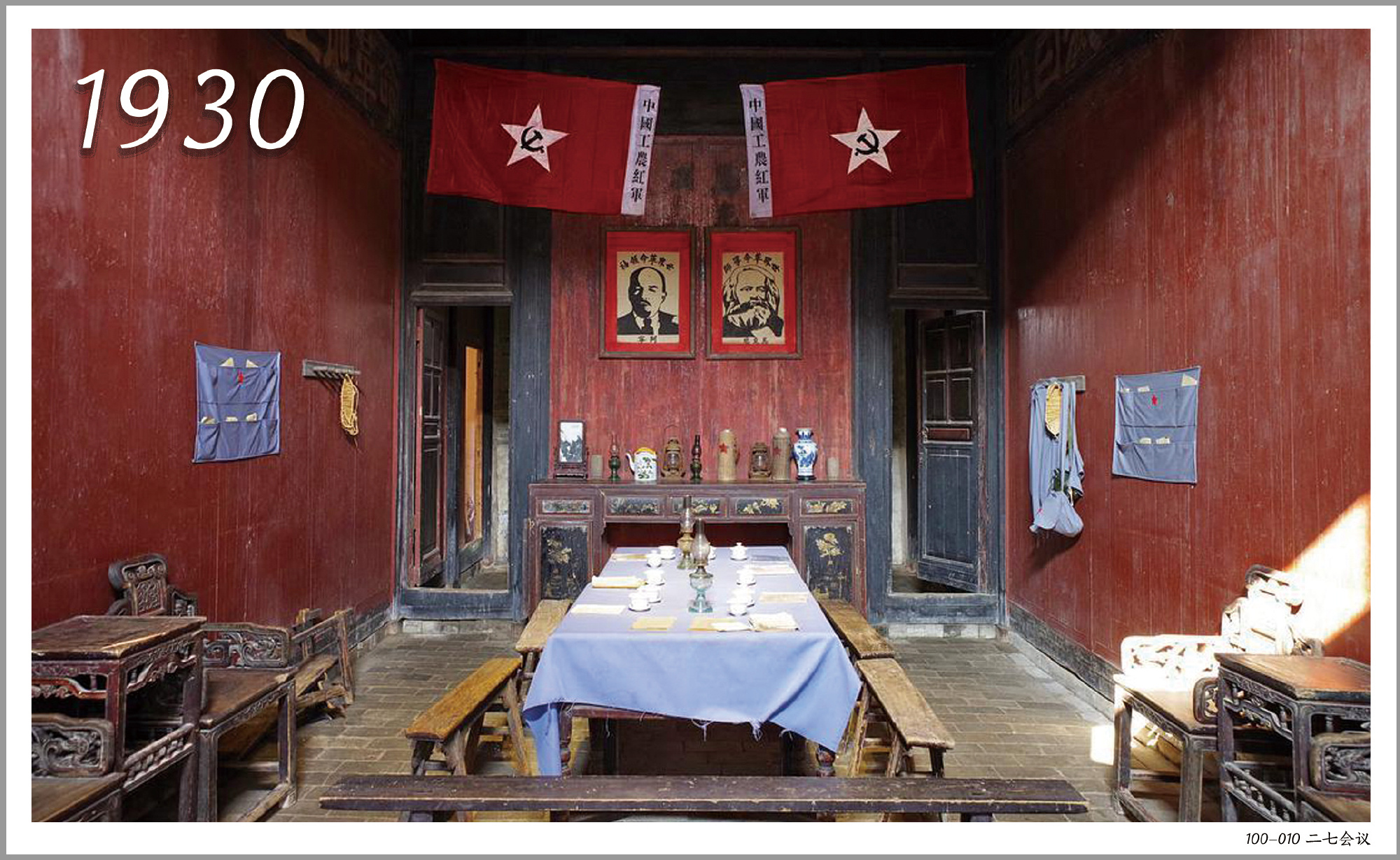 1930年2月7日,“二七會議”在江西吉安召開,毛澤東主持會議,會上成立了紅四、紅五、紅六軍的共同前委,并確定了黨深入土地革命、建立革命政權和發展工農武裝的任務。1930年成為中國共產黨戰略轉移的關鍵之年,黨開始以農村革命根據地為陣地,轟轟烈烈開展土地革命,步步為營掀起武裝斗爭,推動新民主主義革命走向復興。