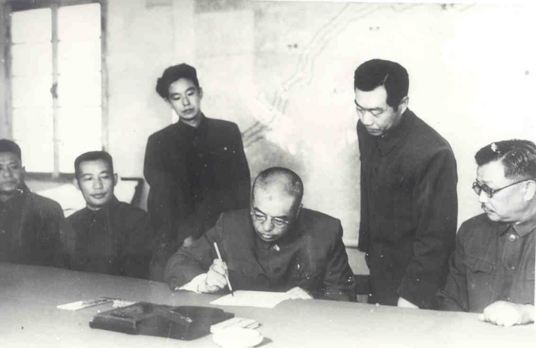 中國人民志愿軍司令員彭德懷在停戰(zhàn)協定上簽字