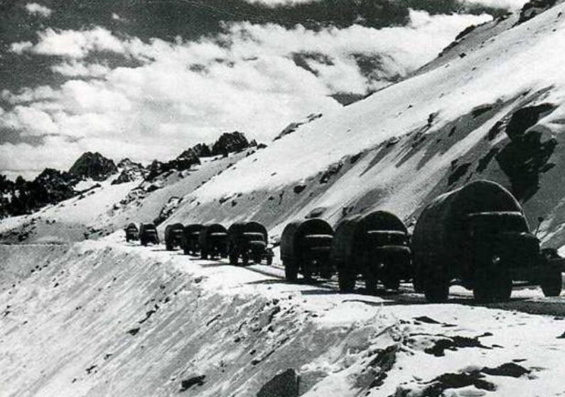 1954年12月25日,兩條當(dāng)時(shí)世界上海拔最高的公路——康藏公路和青藏公路,分別從雅安和格爾木跨越崇山峻嶺修到了拉薩,并在同一天全線通車,結(jié)束了西藏幾千年來不通公路、沒有汽車的歷史。