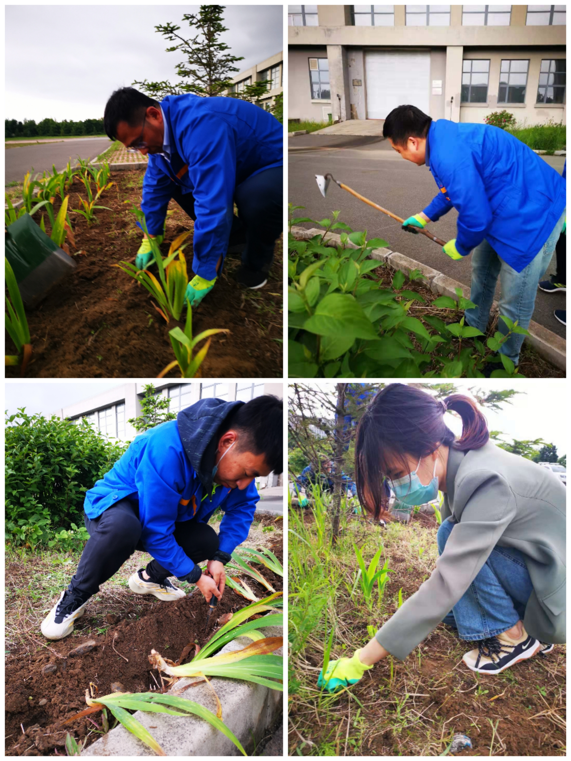 志愿者們秉承“奉獻(xiàn)、友愛(ài)、互動(dòng)、進(jìn)步”的精神,利用下班時(shí)間,將廠區(qū)東、西兩側(cè)停車場(chǎng)八個(gè)花壇中的雜草、建筑垃圾清理干凈,并種植了1600株藍(lán)色鳶尾花。志愿活動(dòng)中大家分工明確、團(tuán)結(jié)協(xié)作,除草、翻土、刨坑、落苗、澆水、培土一氣呵成,克服了工具少、時(shí)間緊的困難,精心學(xué)習(xí)花苗種植技術(shù),確保了株苗成活率和栽種質(zhì)量。連續(xù)多日的勞動(dòng),志愿者們雖身體疲憊,但心情愉悅,看著風(fēng)中搖曳的鳶尾花,個(gè)個(gè)笑逐顏開(kāi)。