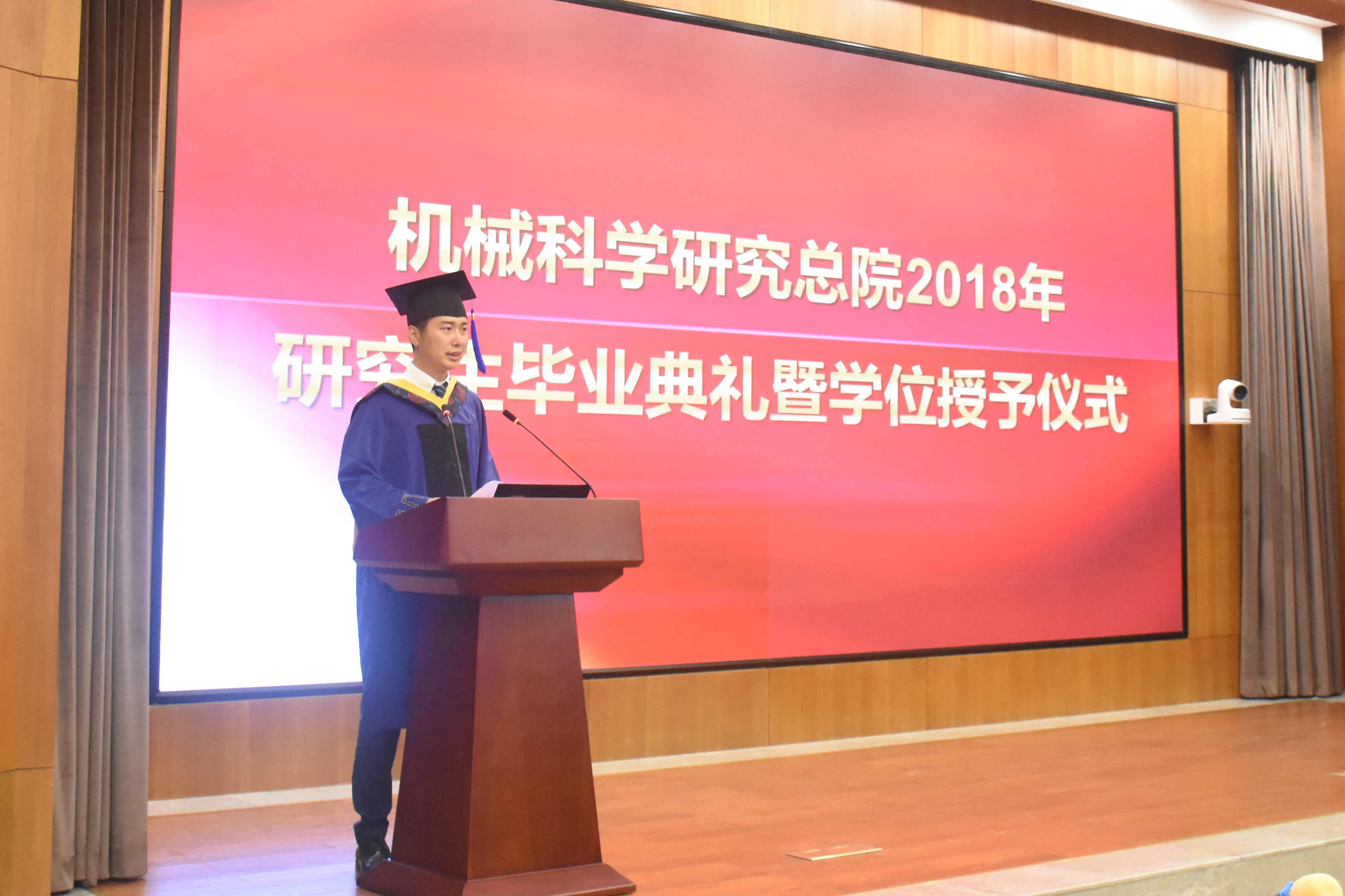 典禮上,單忠德副主席分別宣讀了機械總院集團關于授予2018屆畢業(yè)研究生學位的決定、優(yōu)秀畢業(yè)研究生、優(yōu)秀學位論文、科研創(chuàng)新成果獎以及 “創(chuàng)青春”首都大學生創(chuàng)業(yè)大賽獲獎名單,王德成主席親自為每名畢業(yè)研究生行“撥穗禮”并頒授學位證書,向優(yōu)秀畢業(yè)研究生、優(yōu)秀學位論文獲得者、科研創(chuàng)新獎代表頒發(fā)了榮譽證書,單忠德副主席向“創(chuàng)青春”首都大學生創(chuàng)業(yè)大賽獲獎指導教師代表頒發(fā)了榮譽證書。