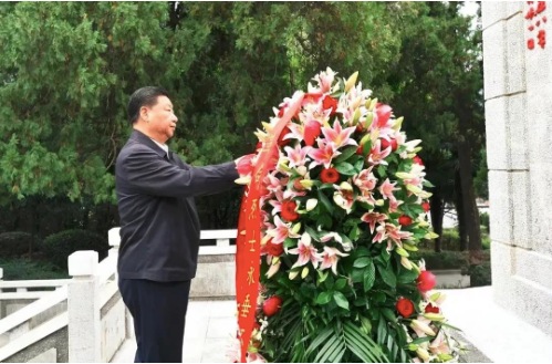 習近平總書記16日在河南省考察調研。當天下午,他首先來到位于新縣的鄂豫皖蘇區首府烈士陵園,向革命烈士敬獻花籃,瞻仰革命烈士紀念堂。隨后,他參觀了鄂豫皖蘇區首府革命博物館,并看望了當地紅軍后代、烈士家屬代表。