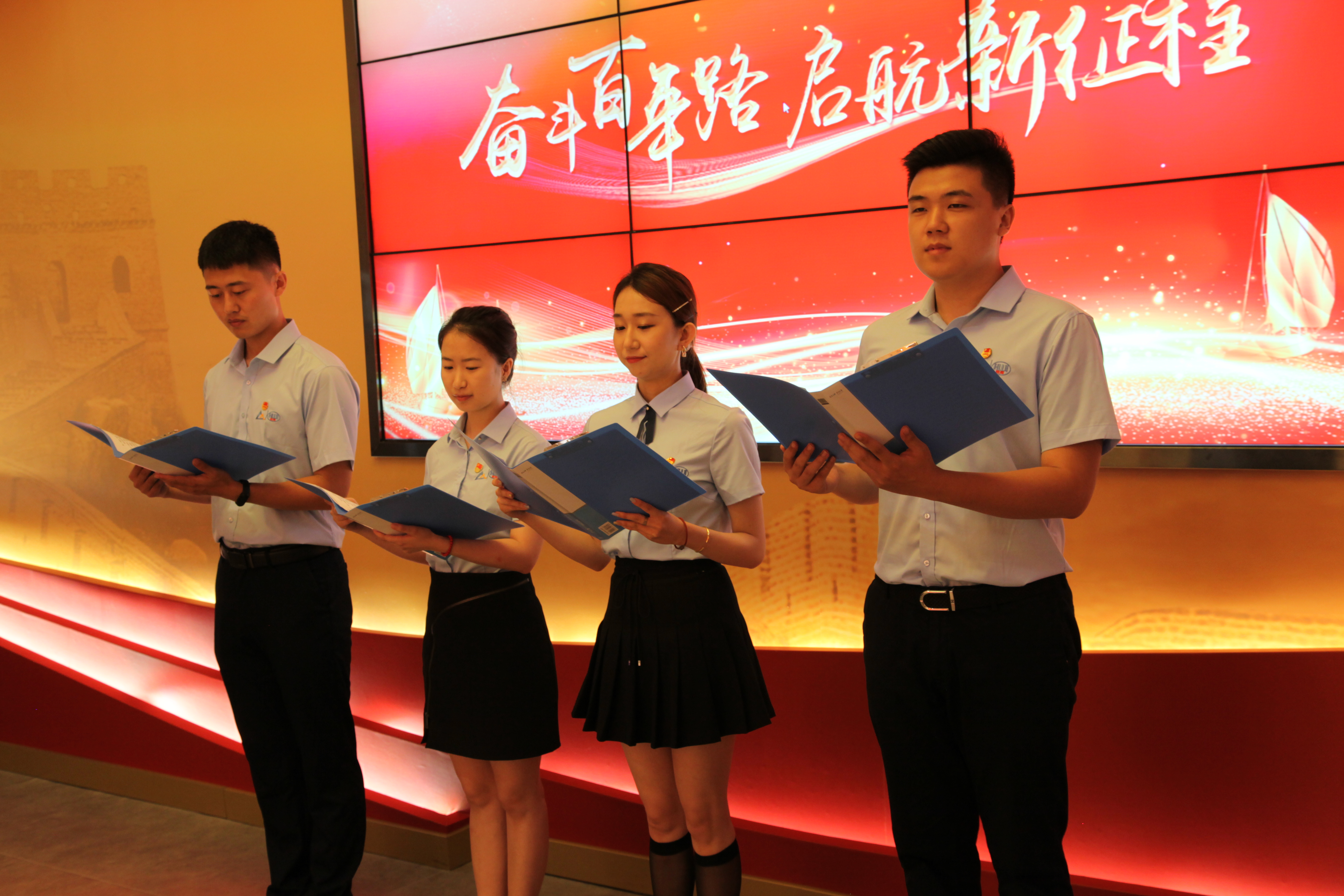 參觀結(jié)束后,全體黨員在宣誓廳面對黨旗,舉起右拳,莊嚴(yán)宣誓。青年團(tuán)員激昂獻(xiàn)辭,表達(dá)了對黨的無比崇敬和絕對忠誠,表達(dá)了傳承紅色基因、全力拼搏進(jìn)取的決心。