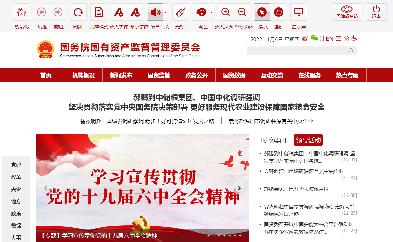 經過精心準備、反復測試,國資委網站適老化與無障礙改造相關功能于2021年12月31日正式上線運行。