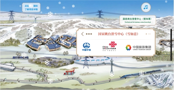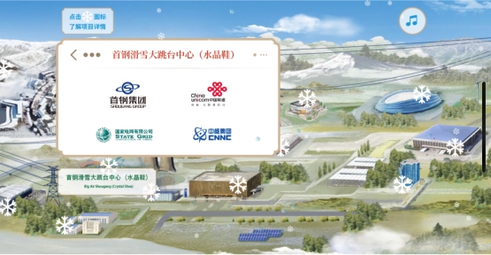 向左滑動來到首鋼園附近,由首鋼集團建設(shè)的首鋼滑雪大跳臺(水晶鞋)與首鋼冷卻塔交相輝映,這里將承擔(dān)單板和自由式滑雪大跳臺比賽項目,其設(shè)計理念源自中國敦煌壁畫中傳統(tǒng)的飛天造型,從側(cè)面看去猶如一只靈動的“水晶鞋”。首鋼園作為冬奧組委所在地,由中核集團、國家電網(wǎng)、中國聯(lián)通等提供的技術(shù)服務(wù),是奧運籌備和指揮神經(jīng)中樞的重要保障。
