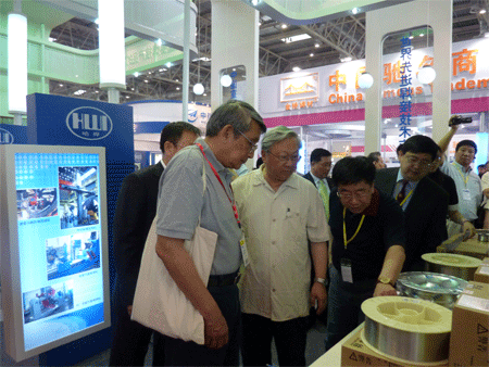 本屆展會上我所展臺以整體形象圖片展示為主,輔以特種焊接材料樣品實物,如鍋爐石化用焊材、低合金高強鋼焊絲、特種不銹鋼焊絲、耐磨堆焊藥芯焊絲、碳鋼、鎳基等材料。這些材料及設(shè)備都吸引了許多新老用戶,觀眾絡(luò)繹不絕,有效的進行溝通與交流,更有利于我所未來銷售發(fā)展。其中,大批觀眾包括眾多外商對展出的不銹鋼焊絲表現(xiàn)出濃厚的興趣,對光亮的焊絲外觀和精致的包裝贊不絕口,是我所此次展覽的一個亮點。