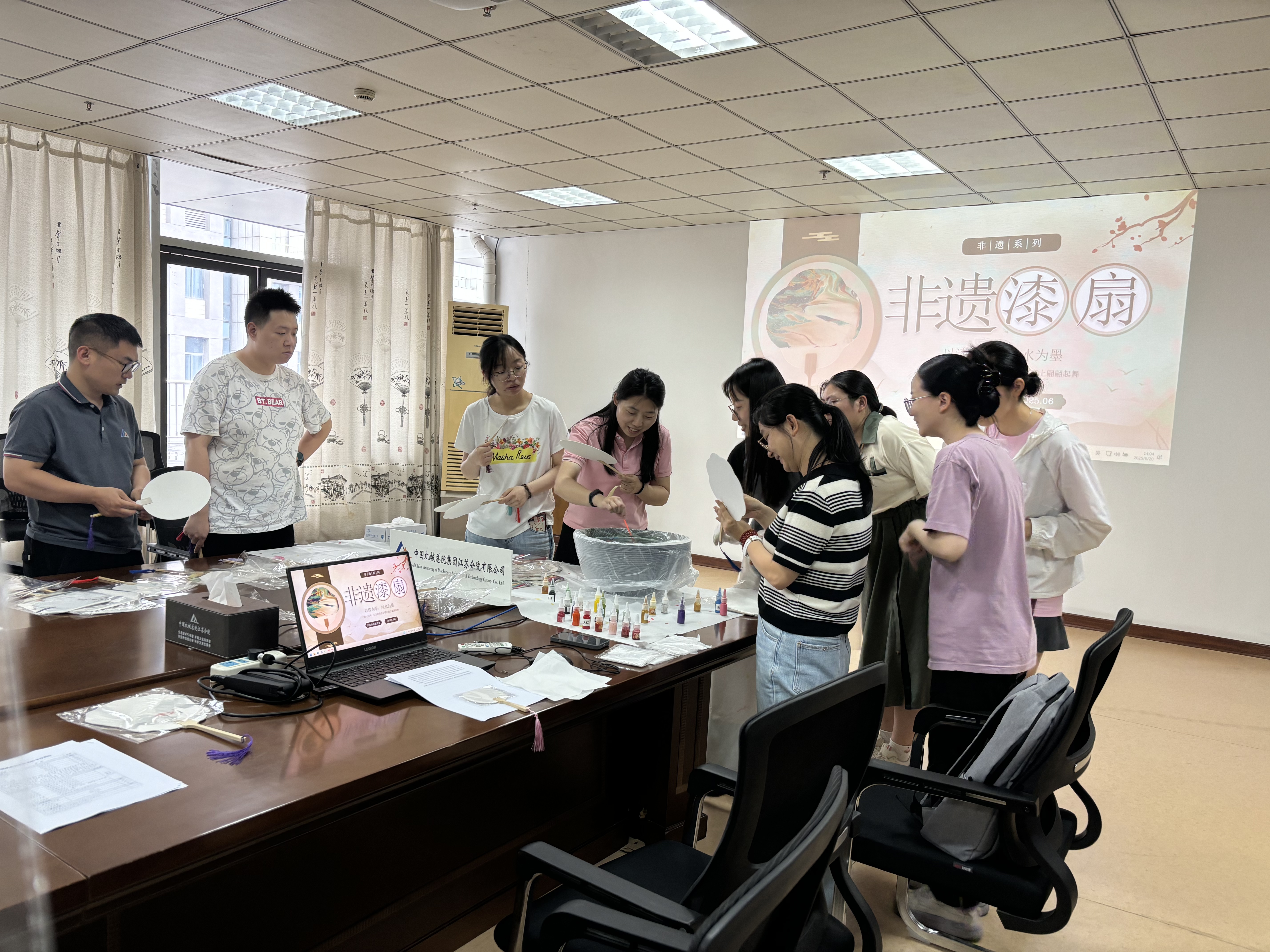 為弘揚中華優秀傳統文化,增強青年文化認同感,團支部同步組織了“非遺漆扇藝術體驗”活動。在團支部的帶領下,團員青年了解了漆扇的歷史淵源、制作工藝及藝術價值。漆扇作為中國傳統手工藝的代表之一,其獨特的技法與美學意蘊讓大家感受到了傳統文化之美。