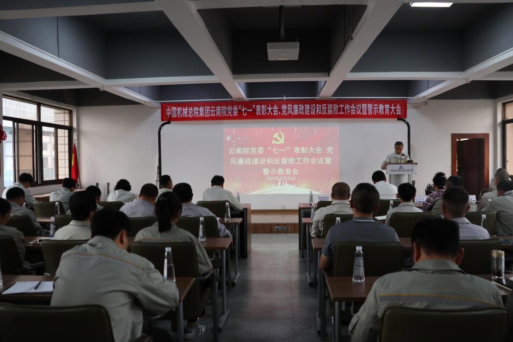 6月30日,為慶祝中國共產黨成立104周年,加強黨員思想政治教育,表彰先進,增強黨員干部廉潔自律意識和拒腐防變能力,中國機械總院集團云南分院有限公司召開“七一”表彰大會暨警示教育大會。會議由黨委委員牛愛京主持,全體黨員參加。
