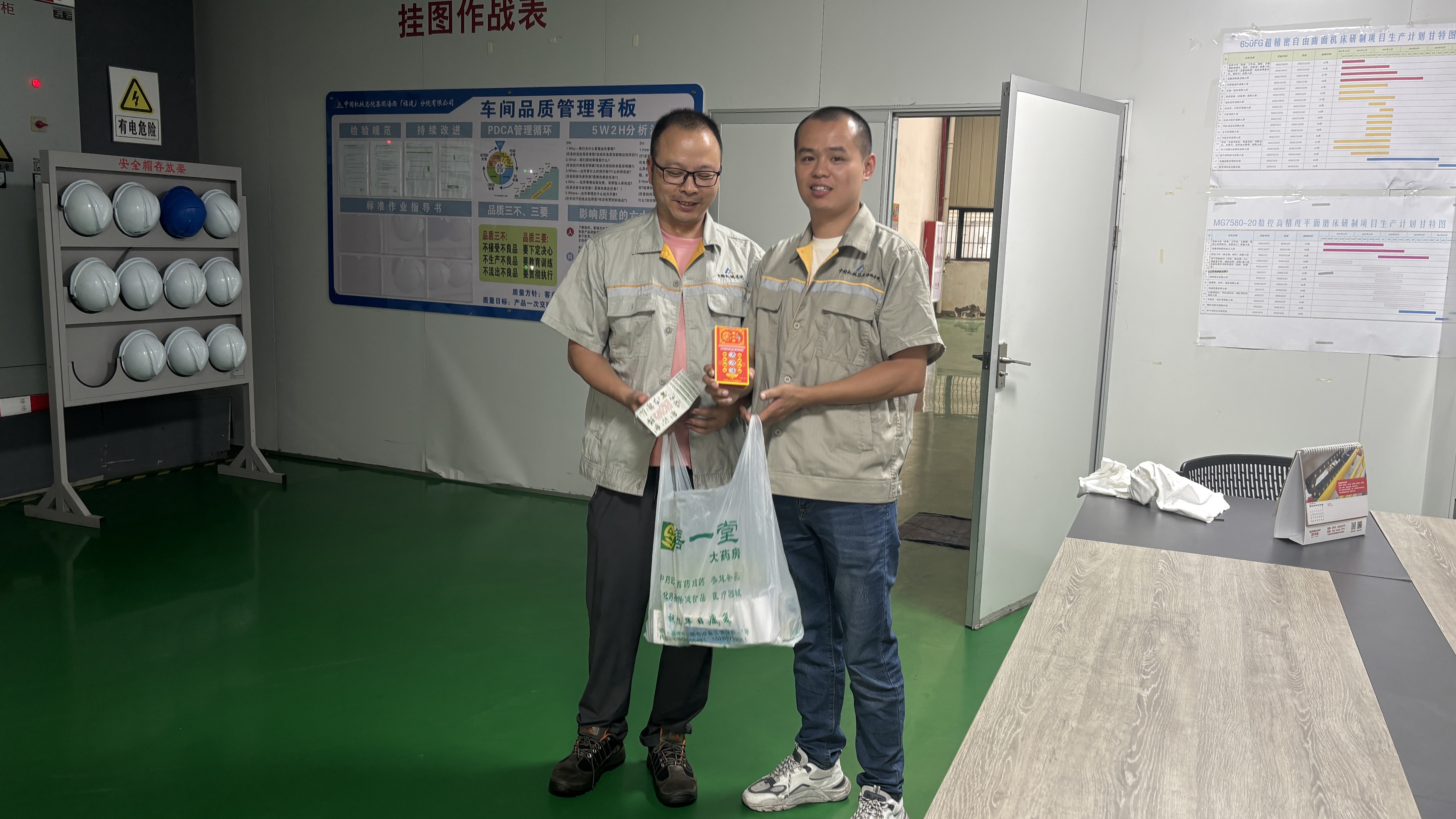 在生產車間品質管理看板前,分院精心籌備的應急藥品包逐一送到員工手中,涵蓋防暑降溫、常見傷病治療等藥品。拿到藥品的員工們臉上洋溢著笑容,感受到公司實實在在的關懷。在車間、在辦公室,大家相互分享這份喜悅,“公司時刻想著我們,干活更有勁兒了!”一位員工質樸的話語,道出了眾人的心聲。